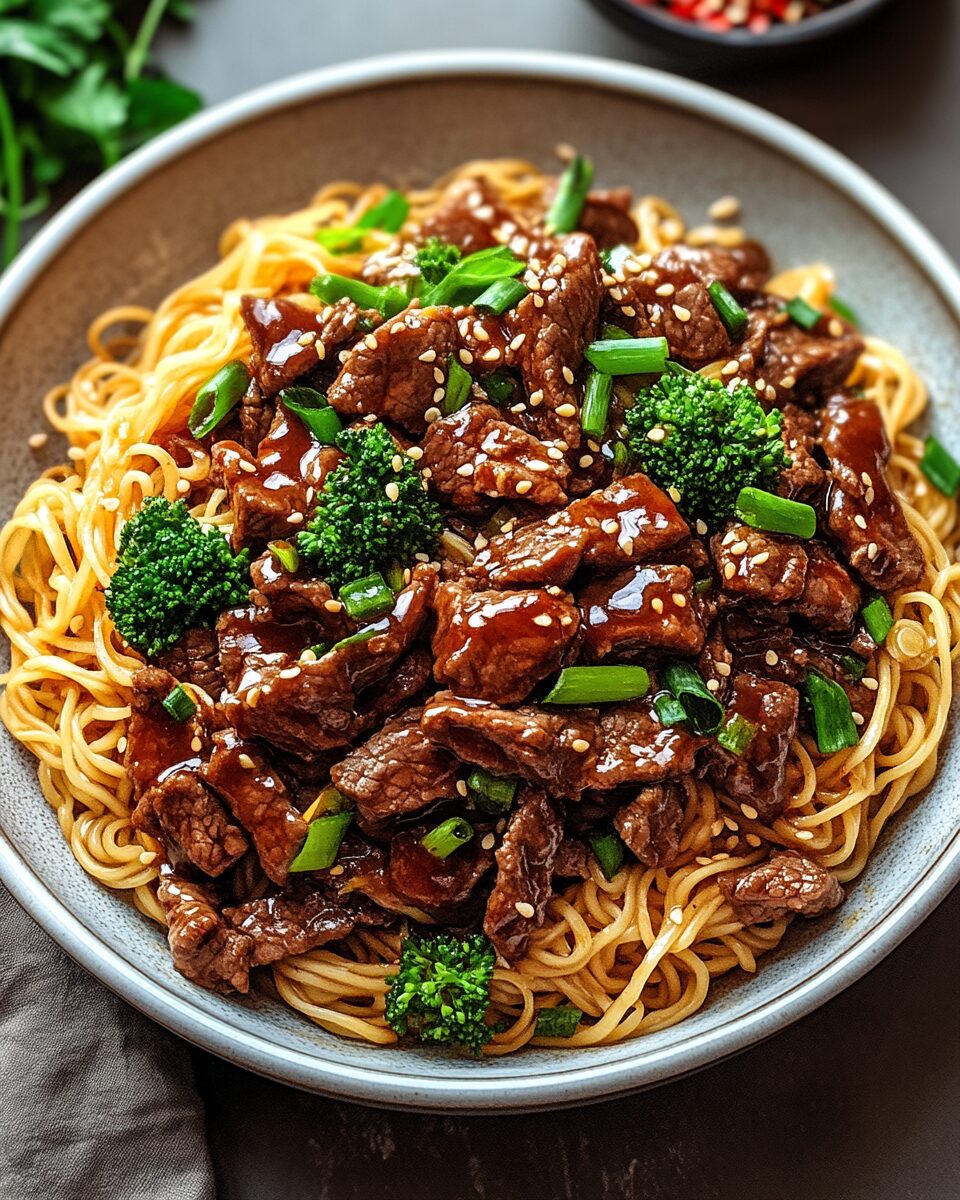 - Full of Flavor: The combination of soy sauce, hoisin, garlic, and ginger creates a bold, savory sauce that enhances the taste of the beef and noodles.
